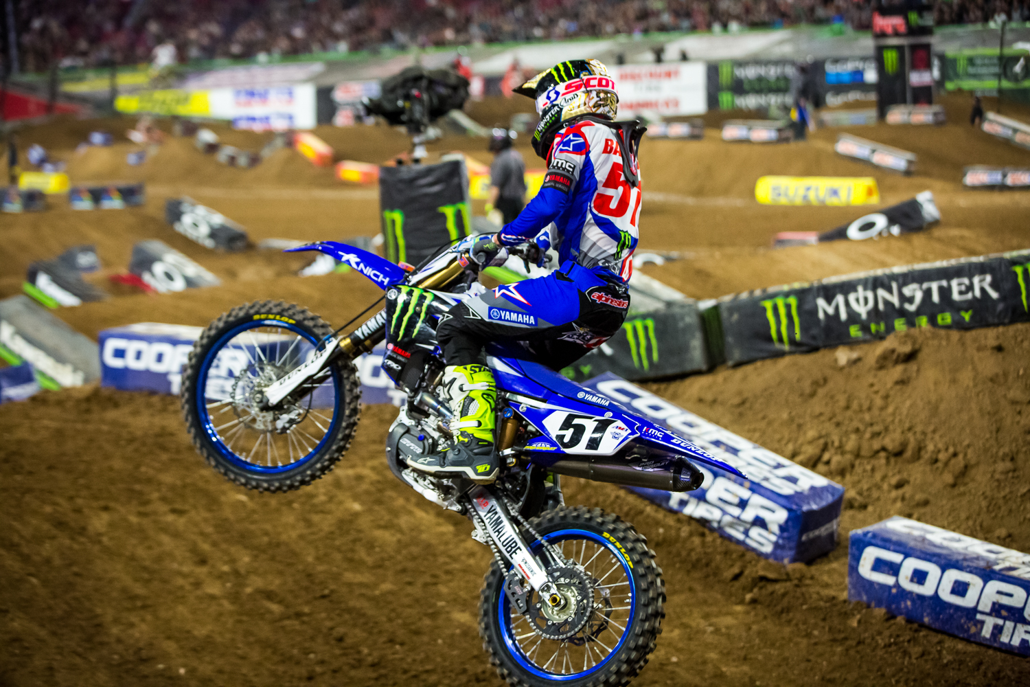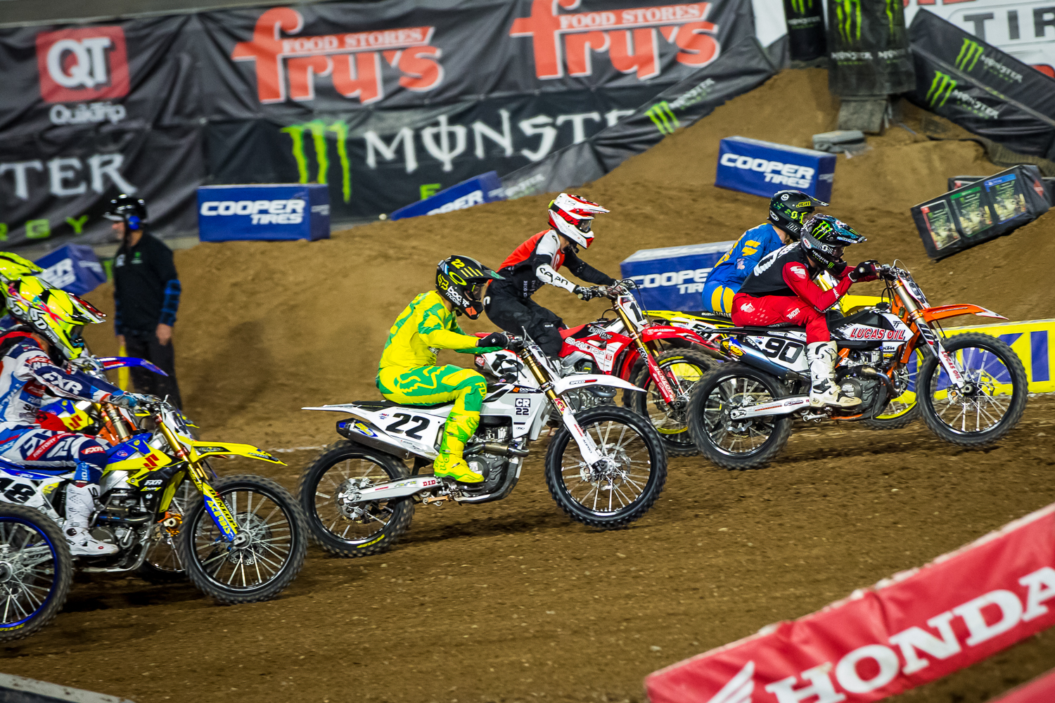 Round 4 of Monster Energy Supercross took us to University of Phoenix Stadium in Glendale, AZ – home of the Arizona Cardinals. The Arizona dirt paired with a large football stadium typically equates to plenty of hard pack and an incredibly technical track – quite the contrast from the Triple Crown track we saw in Anaheim last weekend. Between the format changes and point restructuring, Monster Energy Supercross has created a scenario that makes for much closer and more unpredictable racing – a guaranteed win for the fans in attendance and watching on TV. Four rounds in and we’ve seen three different winners and the Red Plates change hands each round in the 250SX class. In the 450SX class, two riders have donned the red plates, also with three separate winners. The competition is heating up nicely and it’s certainly been an exciting and surprising season thus far. Here’s a look at this week’s Fast Five, a collection of the most memorable and talked about moments from Round 4 of racing.
