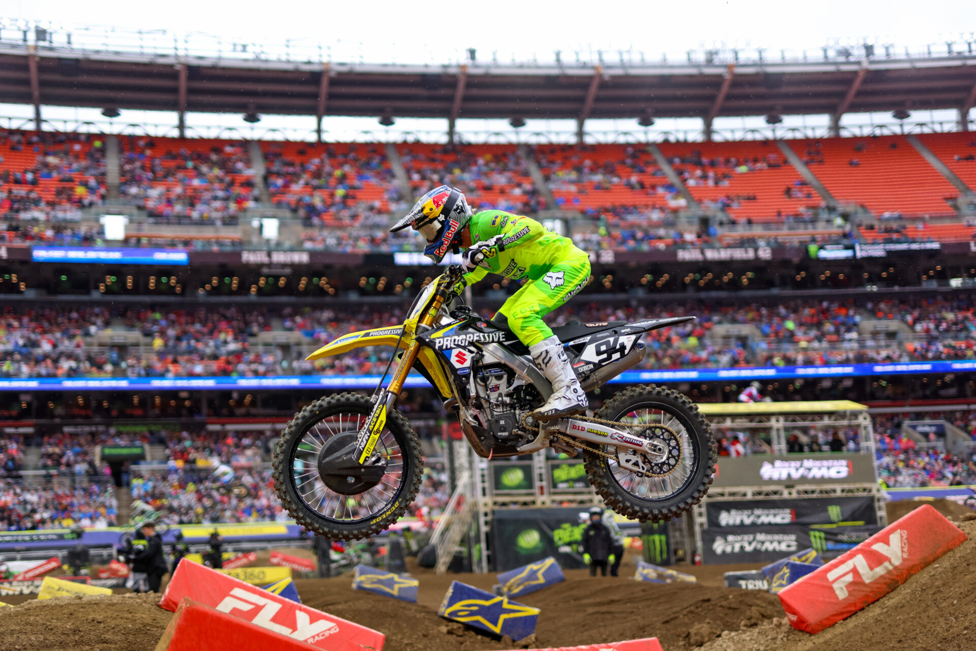 Last weekend, the 2026 Monster Energy Supercross Series visited Cleveland for the first time since 1995. Although the weather wasn’t ideal in Northwestern Ohio on Saturday, the riders and teams made the best of it, and in the end, they put on a great show for the fans. In the 250SX East class, it was Nate Thrasher who used the triple crown format to his advantage, taking his first overall win of the season. In the 450SX class, it was Ken Roczen who edged out Justin Cooper and Cooper Webb to secure the victory and move to within one point of the series lead. Now, the series moves to the City of Brotherly Love for Round 15. For this week’s Behind The Lens, here is a collection of Matt Wellumson photos.