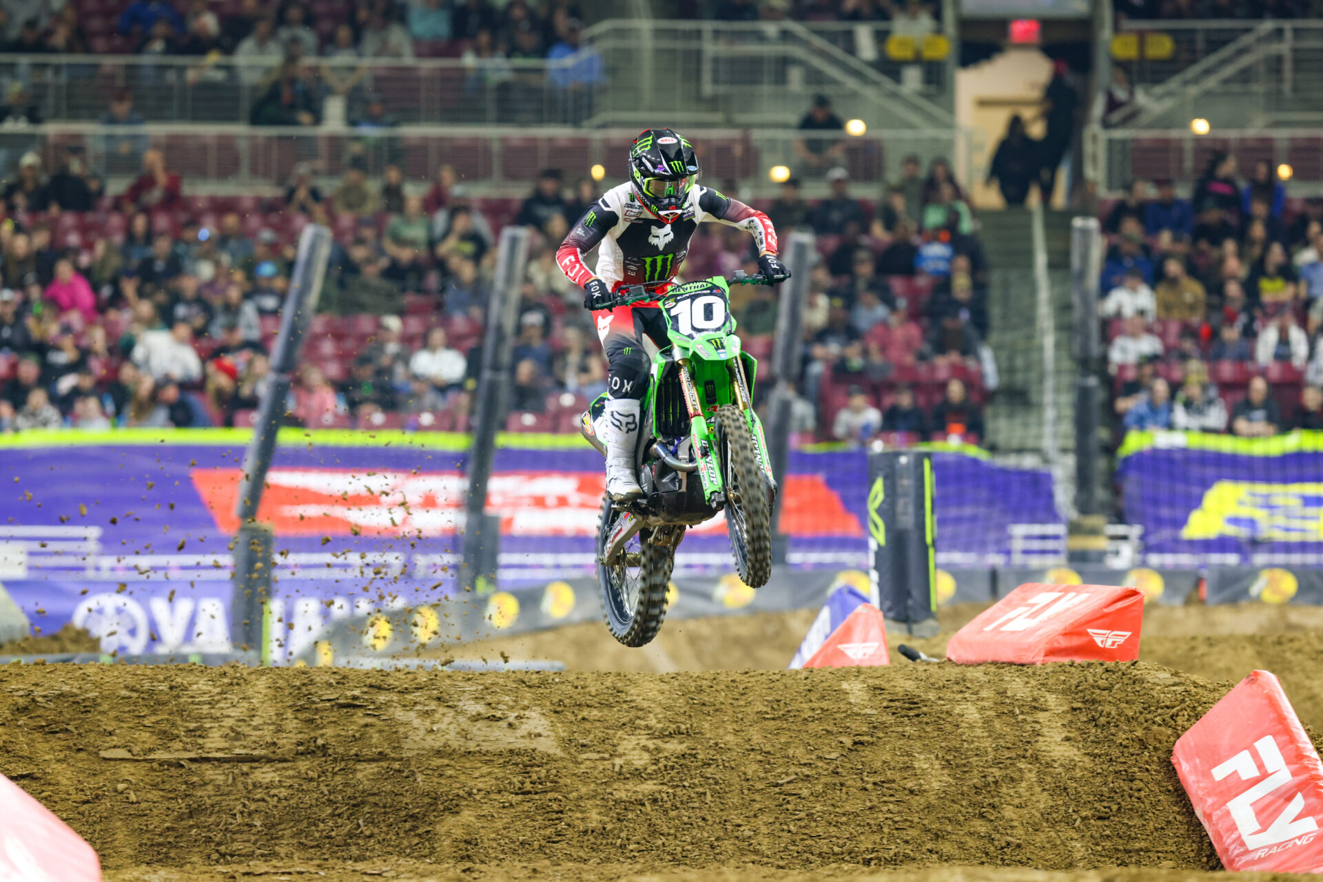 SX loves the Midwest and the Midwest loves SX. Even though he says he’s fine, many feel Eli Tomax is dealing with some sort of injury. After his hard crash last weekend in Detroit, Hunter Lawrence was still able to finish on the 450SX podium on Saturday night. Cole Thompson continued his four-race streak of qualifying for 450SX main events. After winning the 450SX LCQ, Cole got an interview and some TV time. Ryder D has shown a lot of speed in recent weeks, but hasn’t been able to translate it into good results. Seth Hammaker rode well in St Louis and finished on the 250SX class podium. Preston Masciangelo has been riding very well lately, but in St Louis, he missed the 250SX main event by a few spots. Since returning from injury, Jorge Prado has earned the reputation of being a good starter and hard to pass. After his win in St Louis, Ken Roczen has moved to within 5 points of the 450SX series lead. The dirt was soft, and the ruts were deep in St Louis. After a solid race last weekend, Chase Seston had yet another mishap during the 450SX main event. After the 450SX main event, Ken Roczen calls his family to tell them he won again. What is wrong with Eli Tomac?The first turn in St. Louis didn’t give the riders much room. Your 250SX class podium. Ken Roczen is getting used to this winning thing.