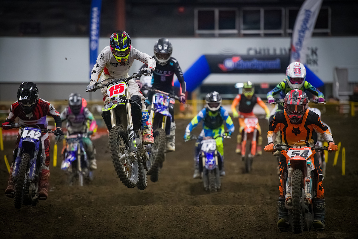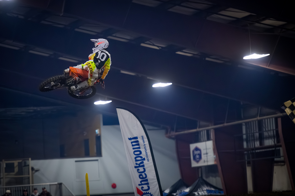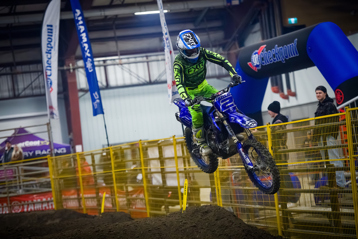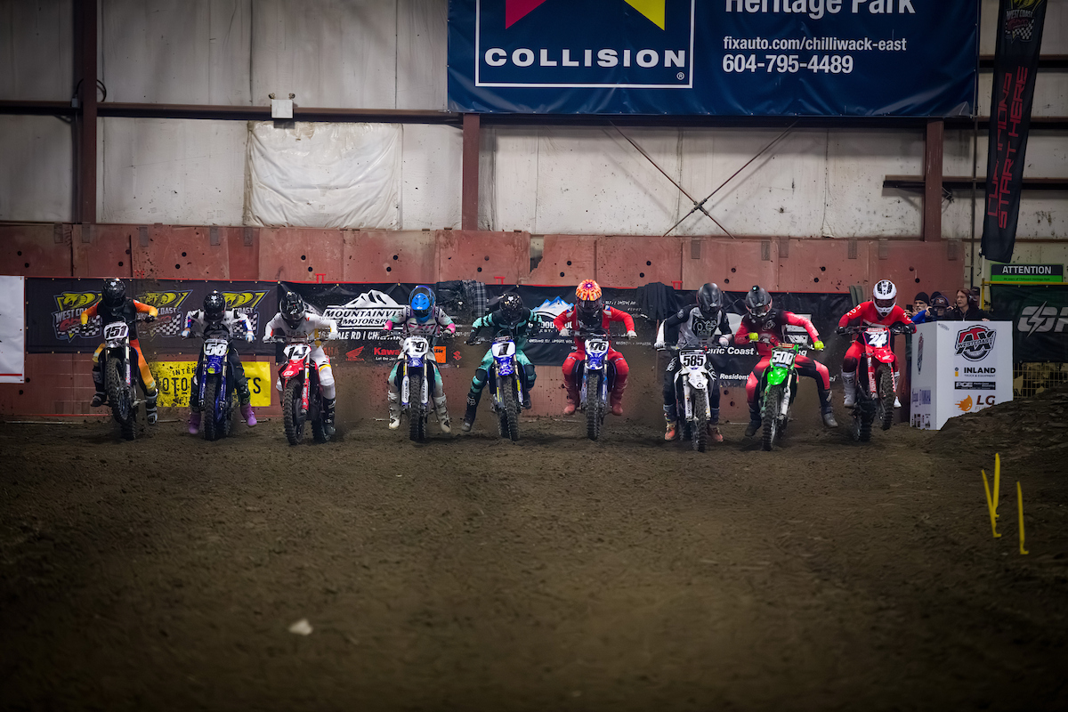 Other than the second main event on Friday where he led much of the race, Quinn did not get great starts this weekend. Julien Benek was the rider to beat this past weekend in Chilliwack!Visiting American Bryton Carroll showed some great speed, especially on night two, but a big crash cost him a main event win. We’ll see if the pro riders are all still friends after this weekend. There weren’t a lot of battles in the pro class this weekend, but at times the riders got real close. Dylan Rempel rain into bike trouble during practice on Saturday, and then had to race a 450 for the first time ever. The track inside Heritage Park Arena was fast and technical for the opening weekend of racing. The boys were ready to battle at the 2025 West Coast AX Series opener. Liam Dodds was fast on the weekend, especially in the whoop section. Vet 30 rider Brock Hoyer is still very fast indoors and his lap times weren’t far off the pro riders. The Junior and Schoolboy 2 classes were had full gates and some great battles. The big man, Colin Jurin, was only there for Friday night, but he said he was coming back for this weekend. At the West Coast AX Series every class and bike size is represented. Quinn looked good on his new Priority MX Thor GASGAS machine. Another top rider making his new team debut was GDR Honda rider Dylan Rempel. The pro class blasts off the line for one of their main events in Chilliwack. The West Coast AX Series will be Braxton Zeirner’s final race on a KTM before moving over to the GDR Team. Ryan Lockhart and Kyle Beaton have done a great job with the 2025 West Coast AX Series.