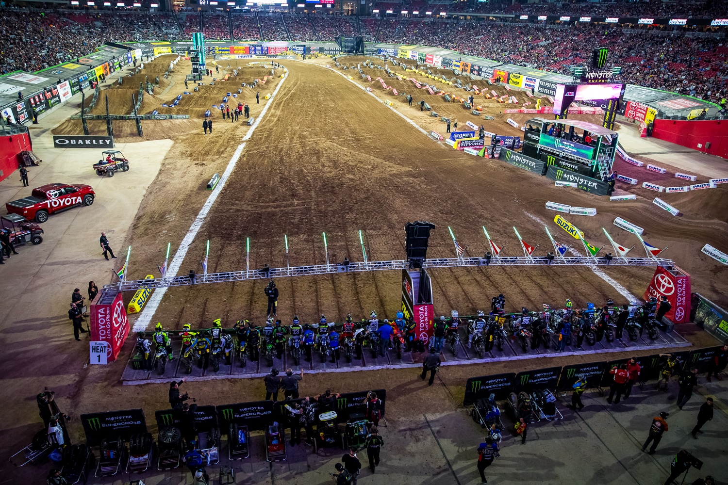 Round 4 of Monster Energy Supercross took us to University of Phoenix Stadium in Glendale, AZ – home of the Arizona Cardinals. The Arizona dirt paired with a large football stadium typically equates to plenty of hard pack and an incredibly technical track – quite the contrast from the Triple Crown track we saw in Anaheim last weekend. Between the format changes and point restructuring, Monster Energy Supercross has created a scenario that makes for much closer and more unpredictable racing – a guaranteed win for the fans in attendance and watching on TV. Four rounds in and we’ve seen three different winners and the Red Plates change hands each round in the 250SX class. In the 450SX class, two riders have donned the red plates, also with three separate winners. The competition is heating up nicely and it’s certainly been an exciting and surprising season thus far. Here’s a look at this week’s Fast Five, a collection of the most memorable and talked about moments from Round 4 of racing.