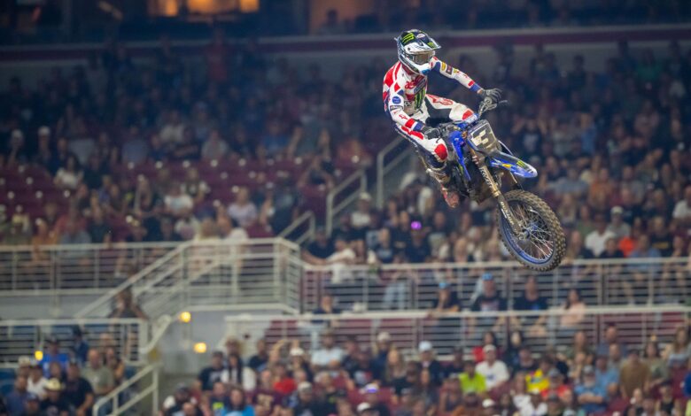 The first thing I want to talk about this week is Round 2 of the SMX Playoffs that took place at the America’s Dome in St Louis. After a shortened opening round last weekend in Charlotte (due to rain and lightning), everyone was excited to have Round 2 take place indoors, on a very unique track. Overall, I thought the track raced well all evening, even with its hybrid design. Leading up to the race, there was some extra hype with the track leaving the main floor of the stadium and heading under the stands. I’m not sure why, but I was under the assumption that there would be more to that section, and not just two short straights with a 180 degree corner. In the end though, it was different, and I did like the left hand corner and technical little triple jump when the riders came back into the stadium. Those type of triples (when the first and third jumps are smaller than the middle jump) can be tricky, especially when there is a sweeping corner before, and the riders aren’t quite straight when they take off. Also, there was talk all day from the riders and broadcast team that track was difficult to pass on. I could see that as almost all of the riders were doing the same jump combinations on the track. Of course, after watching Jett Lawrence go from almost dead last to fourth in the opening 450 main event, it threw that hypothesis out the window. The racing was entertaining, and at this point of the season that is really all that matters from a fans perspective. Also, it was good to see Cole Thompson qualify for the 250 main event from the Wild Card race. Cole admitted on Social Media that the pace in the main event was extremely fast, and that it was tough to adjust. However, Cole has to be happy with the progress he’s made in a short time on the AEO Motorsports KTM. Remember, last weekend he didn’t even qualify for the main event. Hopefully, this trend continues, and Cole will be able to crack the top 15 this weekend in Las Vegas. Finally, I want to say congratulations to Ryder Malinoski on winning the second SMX Next race on Saturday evening. Ryder grabbed the holeshot and never looked back. No doubt, the experience Ryder got this summer racing the Eastern rounds of the 250 Triple Crown Series was one of the contributing factors to his big win in St Louis.